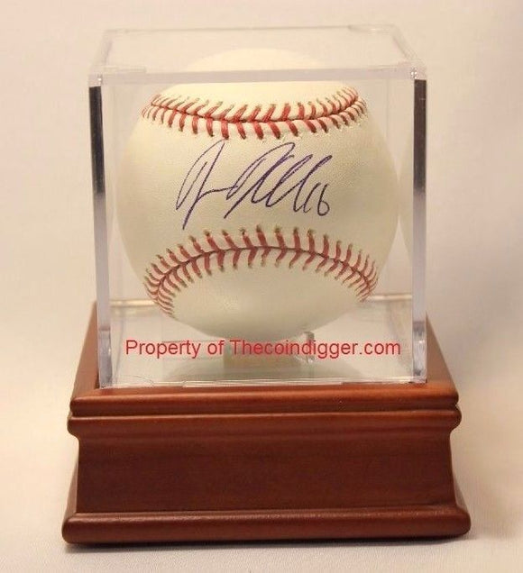 Baseball Holder Wood Base Display Autograph Storage Case Team Plaque 3x3
